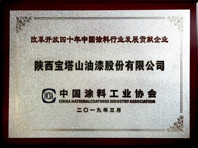 2019年3月,寶塔山漆被中國涂料工業協會評為“改革開放四十周年中國涂料行業發展貢獻企業”