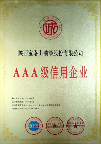 2019年4月寶塔山企業被評為“AAA級信用企業”