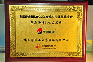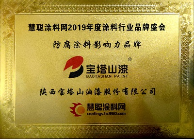2020年7月,寶塔山漆榮獲第十六屆2020年度涂料行業影響力品牌頒獎盛典活動中榮獲”防腐涂料影響力品牌