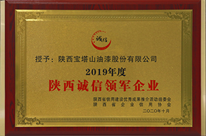 2020年10月,寶塔山漆獲評陜西省誠信領軍企業